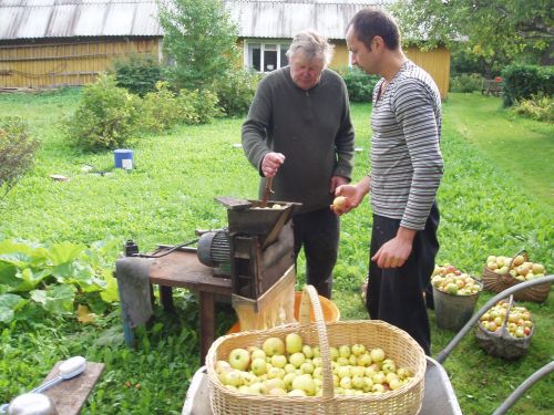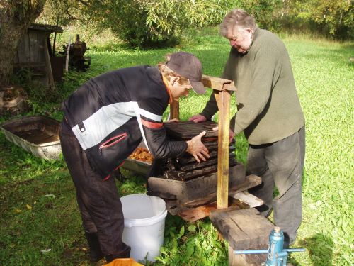 Oli ilus septembri kuu päev, ilm õnnistas täielikult meie mahalategu. Käisin hommikul veel üleküsimas, et kas meid ikka oodatakse. Vastuseks sain “et mida sa siin mitu korda küsid, sai ju kokkulepitud” Ja läks mahla teoks lahti. Ja kui juba teoks läks, küsis naabrimees, et kas rohkem õunu ei ole, et kui juba mahla pressime.