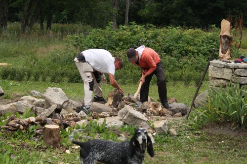 Siit tuli siis nüüd välja, et see aasta austas oma ööpäevase külastusega mind ja Mardi talu ka Aet. Kaasas ema ja sõber. Tänud abi eest! Hein sai rehatatud, Andrus sai puid lõhkuda, lisaks mainitule abile Tanelile puujuurika väljalõhkumisel ja kangutamisel. Aeda ema tubli, rohis maasikaid.